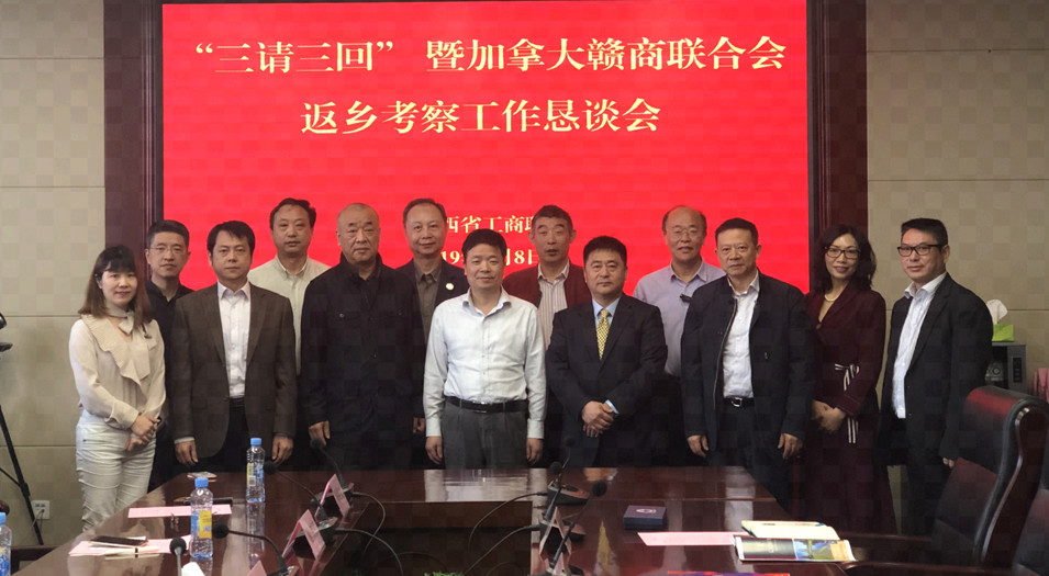 为了更好地联系中加,服务赣商,加拿大赣商联合会回乡拜访团在清明祭祖后,由张荣华会长带领,2019年4月8日上午,到江西省工商联拜访、汇报和学习。省工商联党组成员、副主席洪跃平、省工商联党组成员、秘书长及经联处处长谢松岳非常热情地接待了回乡拜访团,参与接待人员包括万励群、李菁、熊诗瑶等。